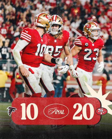 FINAL: @49ers@sportsbots.xyz improve to 5-2! #ATLvsSF