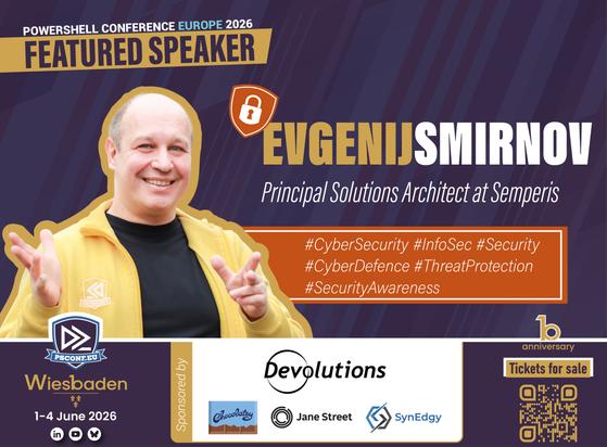 From #AD #security to threat resilience, he’s one of our most trusted voice in #Active #Directory #Cyber #Defence. @it-pro-berlin.de@bsky.brid.gy joins #PSConfEU 2026 as a featured speaker in #Wiesbaden, #Germany. 🎟️ Tickets → psconf.eu #PowerShell #automation #IT #Europe