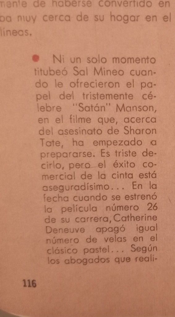 ¿Te imaginas al galán de «Rebelde sin Causa» metido en la piel del criminal más temido de Estados Unidos? Pues casi sucede. Una vieja revista de finales de los sesenta reveló uno de los proyectos cinematográficos más polémicos y desconocidos de Hollywood: Sal Mineo estaba destinado a interpretar a Charles Manson en una película sobre el brutal asesinato de Sharon Tate.