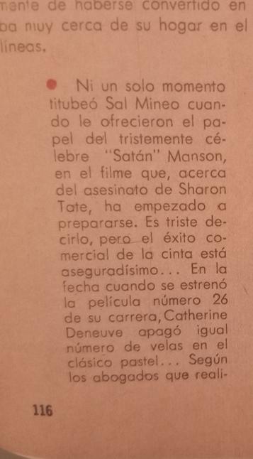Sal Mineo, ese actor que nos enamoró como Plato en la película de James Dean, estaba listo para dar un giro radical a su carrera. Según la revista, el actor no dudó ni un segundo cuando le ofrecieron el papel de «Satan» Manson, como apodaban al líder de la secta que conmocionó al mundo en 1969.