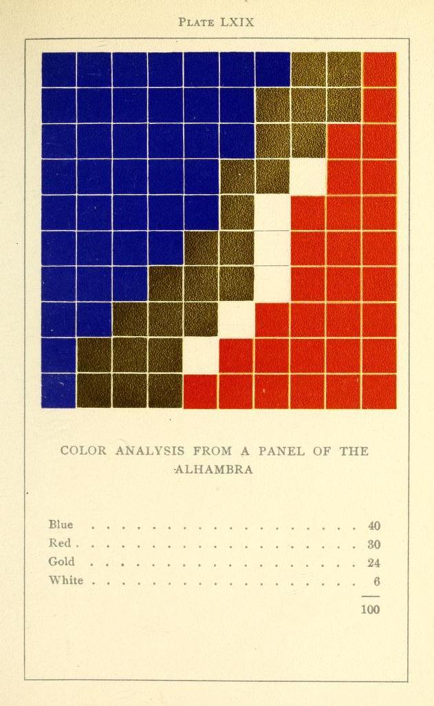 Color Analysis From a Panel of the Alhambra (1902) by Emily Noyes Vanderpoel, from Color Problems: A Practical Manual for the Lay Student of Color.