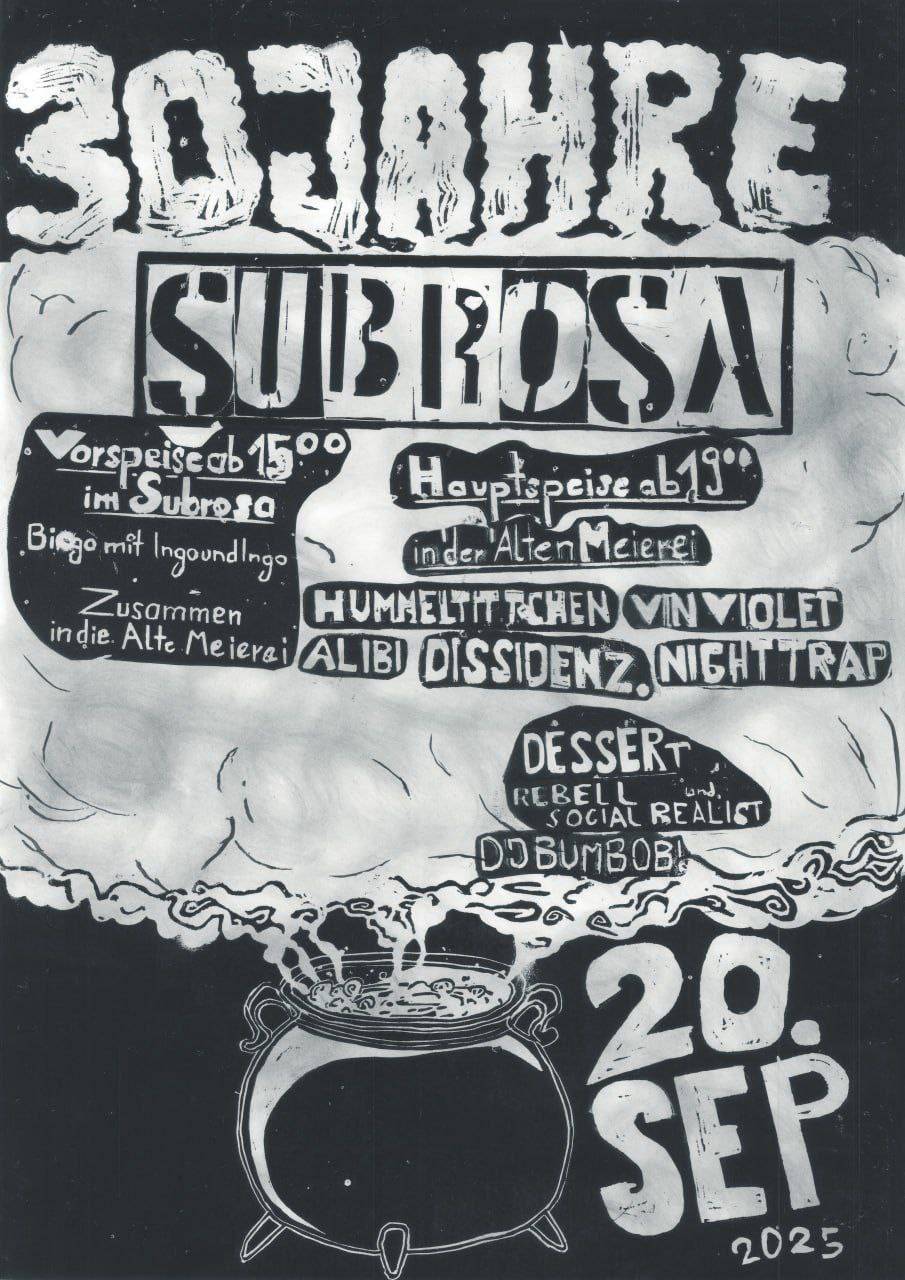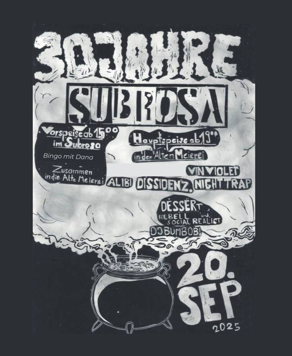 Ich teile hier mal die Ankündigung für den 30jährigen Geburtstag des Subrosas in Kiel.