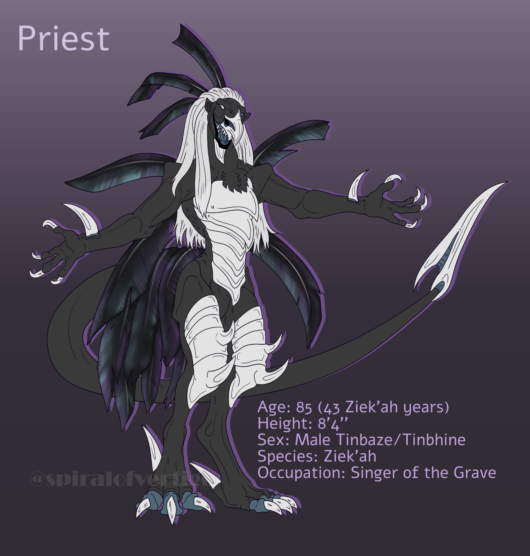 Priest may look intimidating as a large sapient predatory species but the Ziek'ah are a kind, welcoming people and he is their leader.