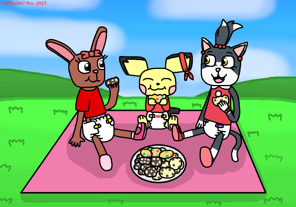 #Amythebunny #Amy #Bunny #Rabbit #Bolty #Pichu #Mouse #Pokemon #Tiffany #Tuxedo #Kitty #Cat #Kitten #Girls #Boy #Cute #Diaper #Nappy #Babyfur #Diaperfur #Shirt #Dress #Cookies #Dessert #Eating #Tray #Birthday #Picnic #Blanket