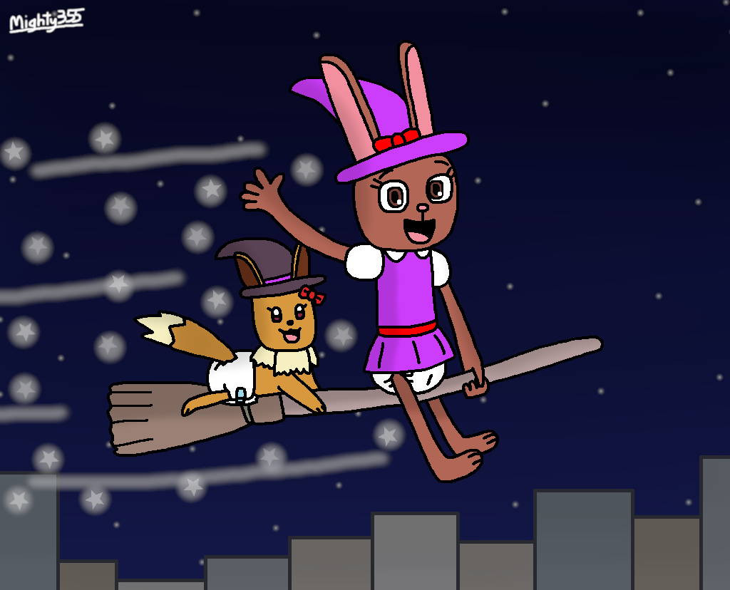 #Amythebunny #Amy #Bunny #Rabbit #Ana #Eevee #Pokemon #Girl #Baby #Cute #Diaper #Nappy #Babyfur #Diaperfur #Halloween #Witch #Hat #Costume #Night #city #Broomstick #ride #Flying