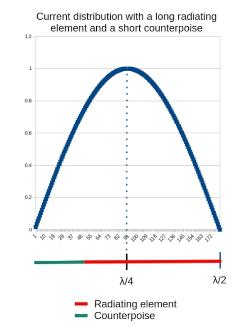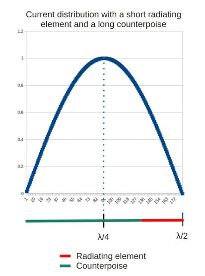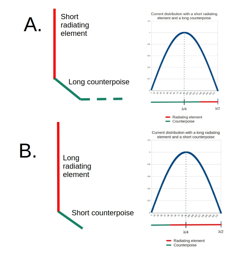 So, is this a result? Maybe not. There is a potential for lost efficiency when the radiating element is shorter than the counterpoise. Let me explain.