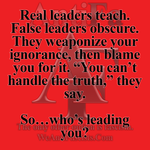 Real leaders teach. False leaders obscure. They weaponize your ignorance, then blame you for it. “You can’t handle the truth,” they say.