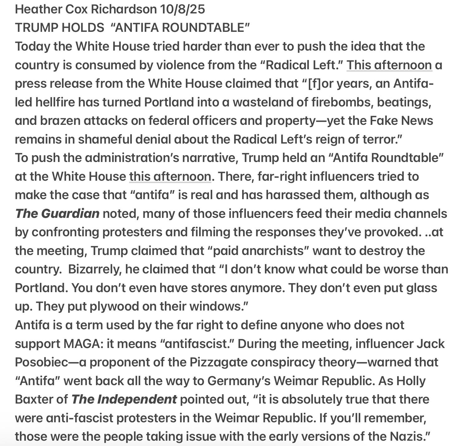 And look, yes, it is absolutely true that there were anti-fascist protesters in the Weimar Republic. If you’ll remember, those were the people taking issue with the early versions of the Nazis. But it’s sort of difficult to position yourself as the good guys if you’re aligning yourself with the Nazis in your historical analogy...