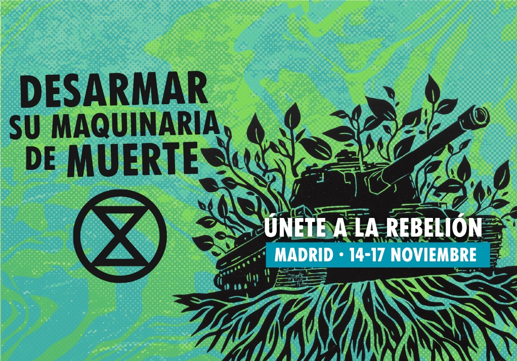 Del 14 al 17 de noviembre en Madrid llamamos a la desobediencia civil no violenta para desarmar la maquinaria de muerte del fascismo fósil 🛢️☠️