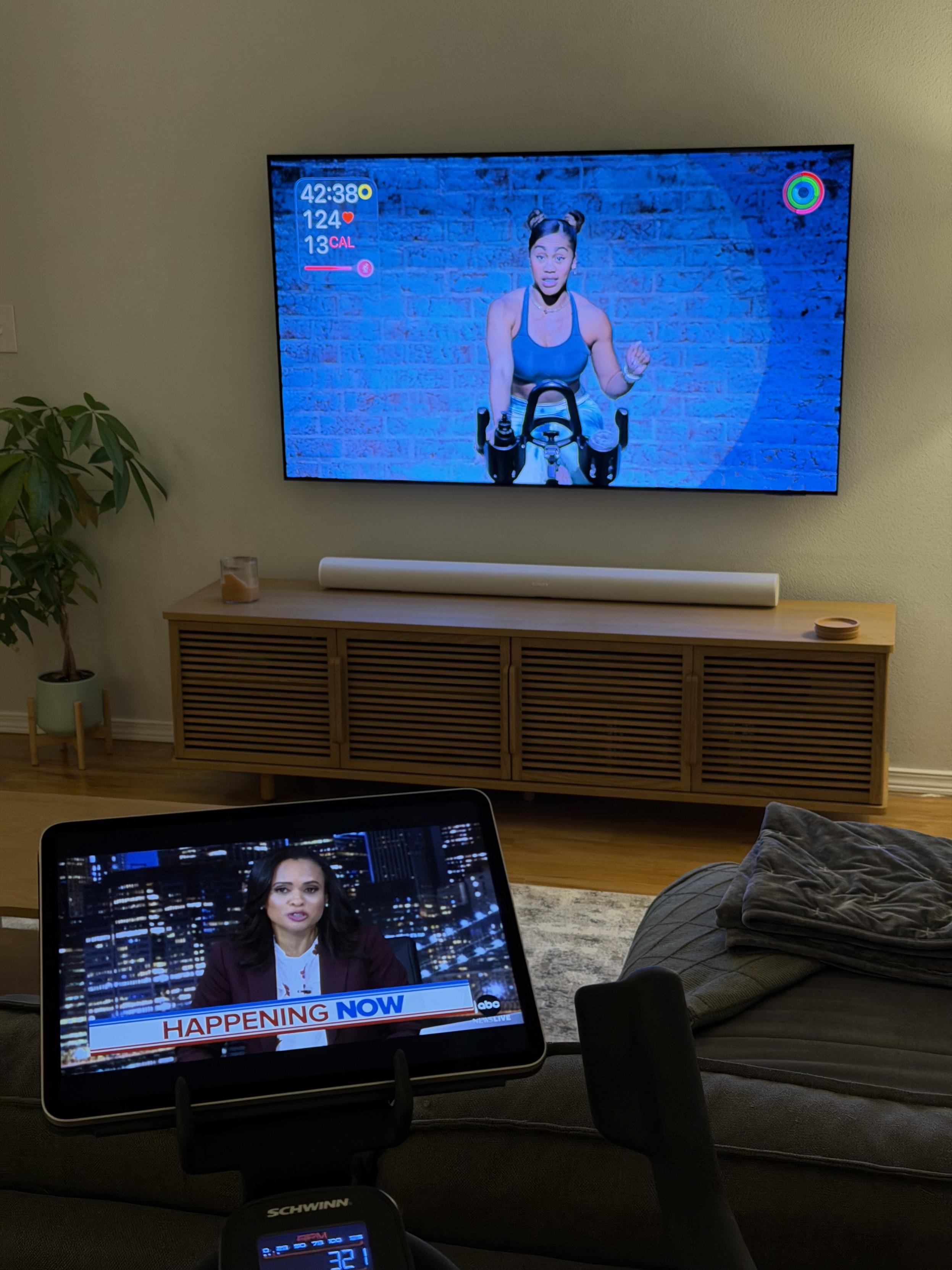 Doing my #AppleFitnessPlus workouts but also keeping up with #ElectionNight results. 😆