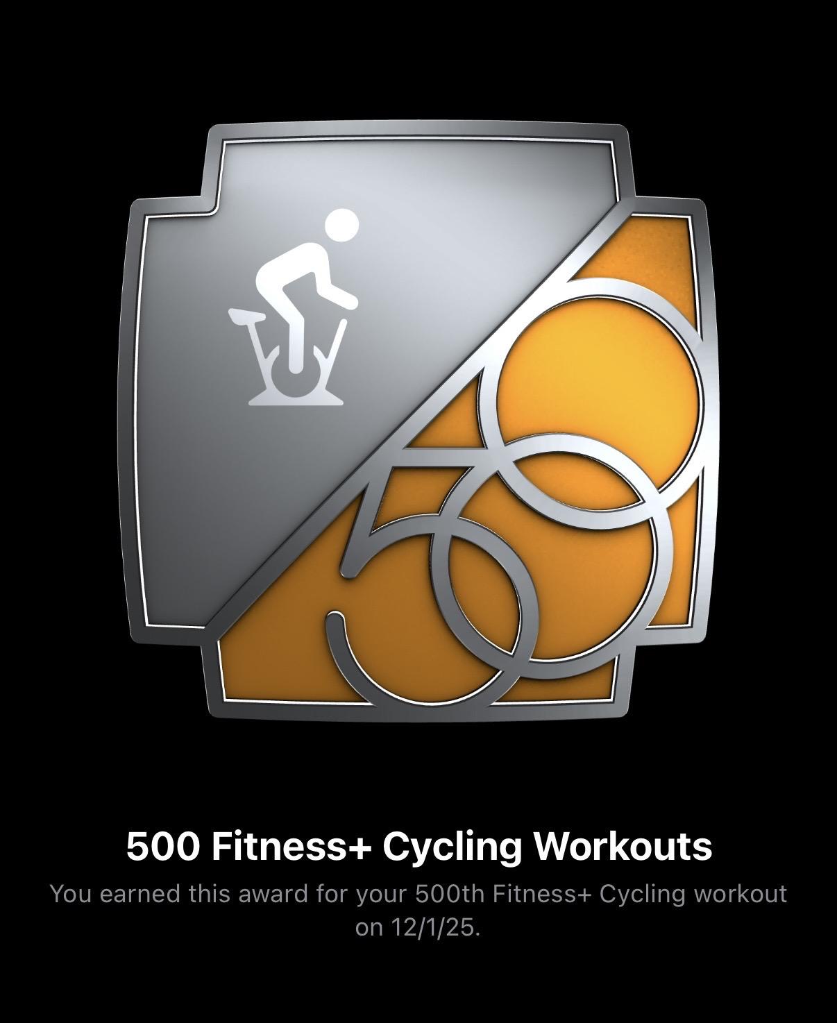 500 cycling workouts on #AppleFitnessPlus complete!!! 🤩