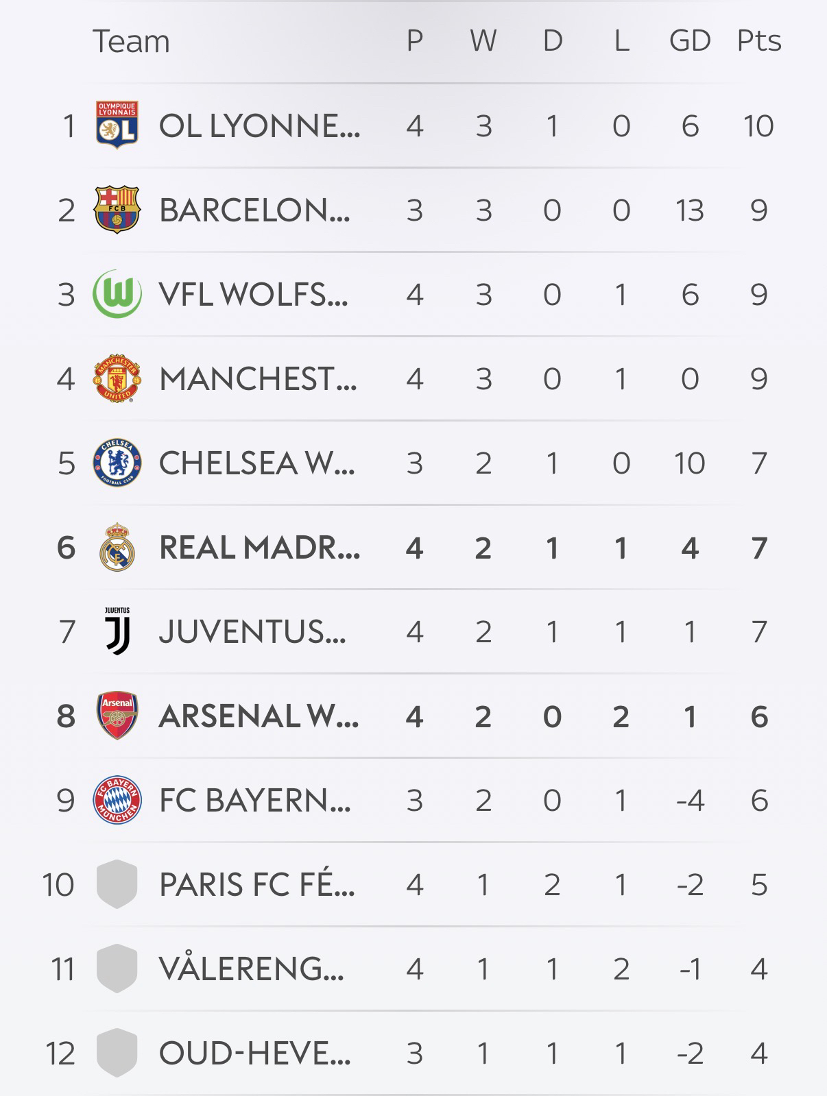The current standings for the Women’s Champions League #UWCL #UCL #Arsenal #ArsenalWomen #COYG #Gunners #AFC #Gunners