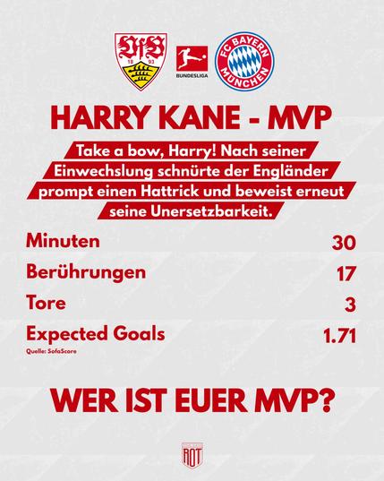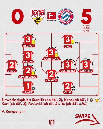 Mehr als deutlich gewinnt der FC Bayern mit 5:0 gegen den VfB Stuttgart und bleibt somit auch im dreizehnten Ligaspiel unbesiegt. Miasanrot mit den Noten, wo vor allem einer zu überzeugen wusste: Harry Kane! #fcbayern #bayern #bayernmünchen #bayernmunich #bundesliga