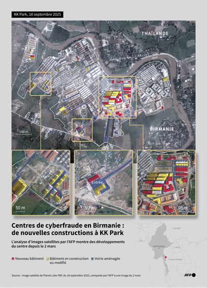 KK Park, le cœur sombre de la cyberfraude à la frontière Thailande / Birmanie - Photo Agence France Presse #Thailande #Birmanie #Myanmar