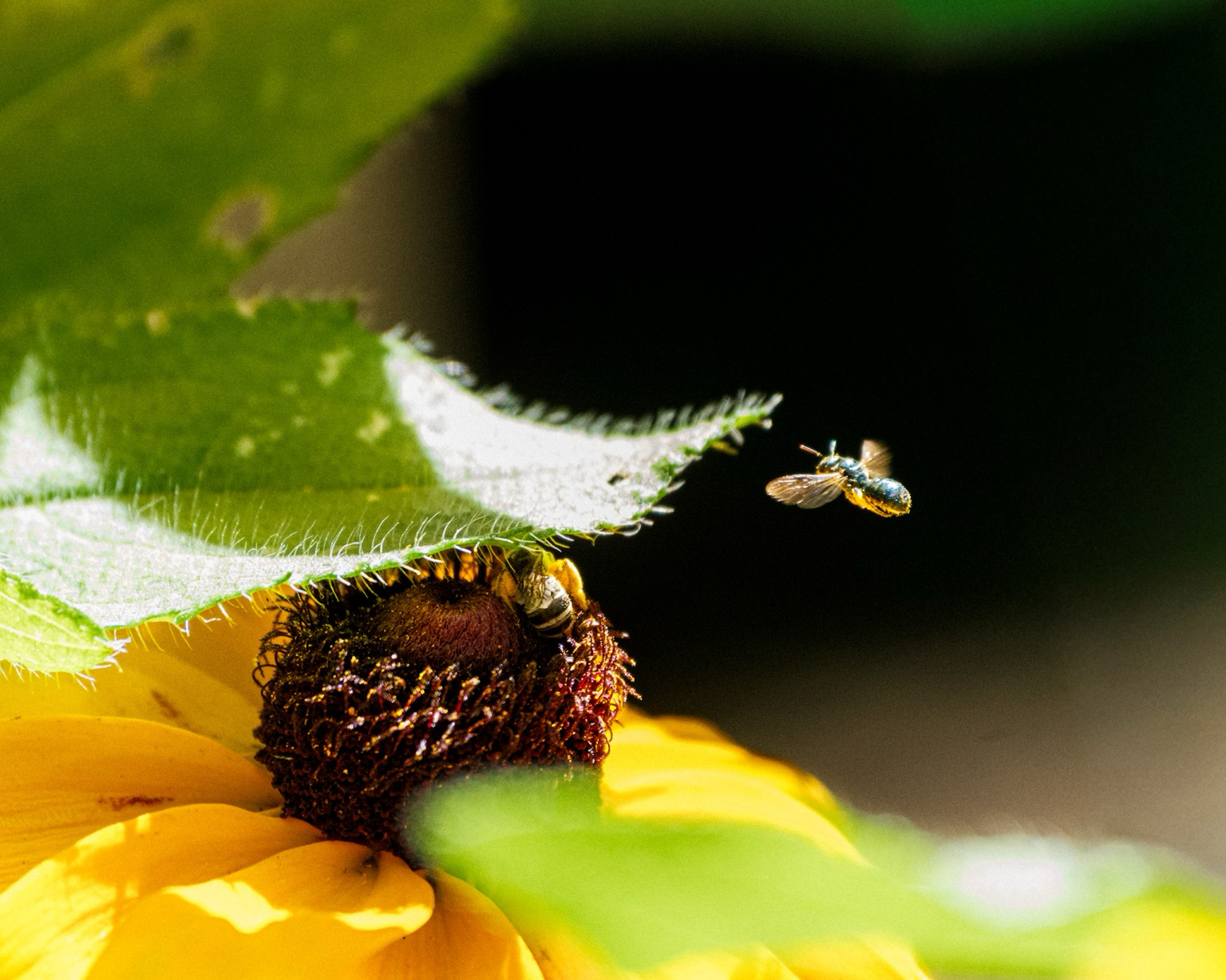 The itty bitty bees were digging the #BlackEyedSusans, but were a little camera-shy...