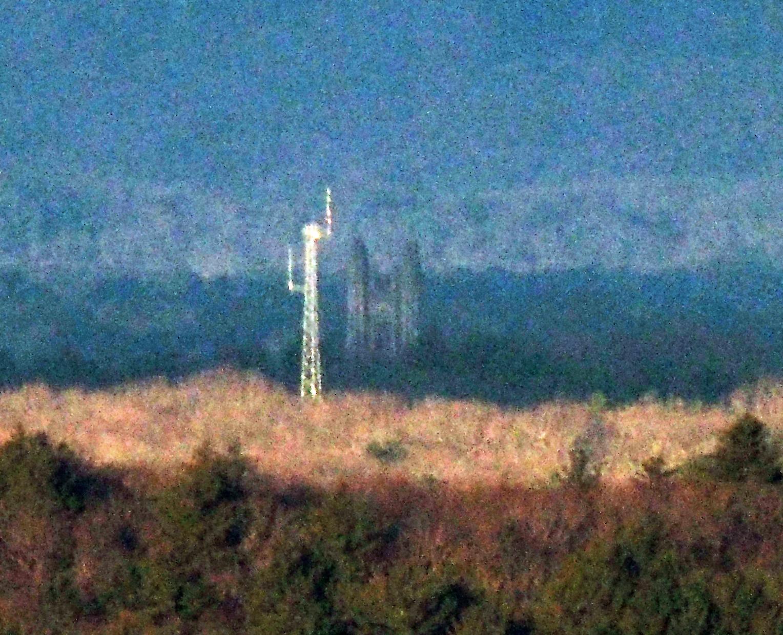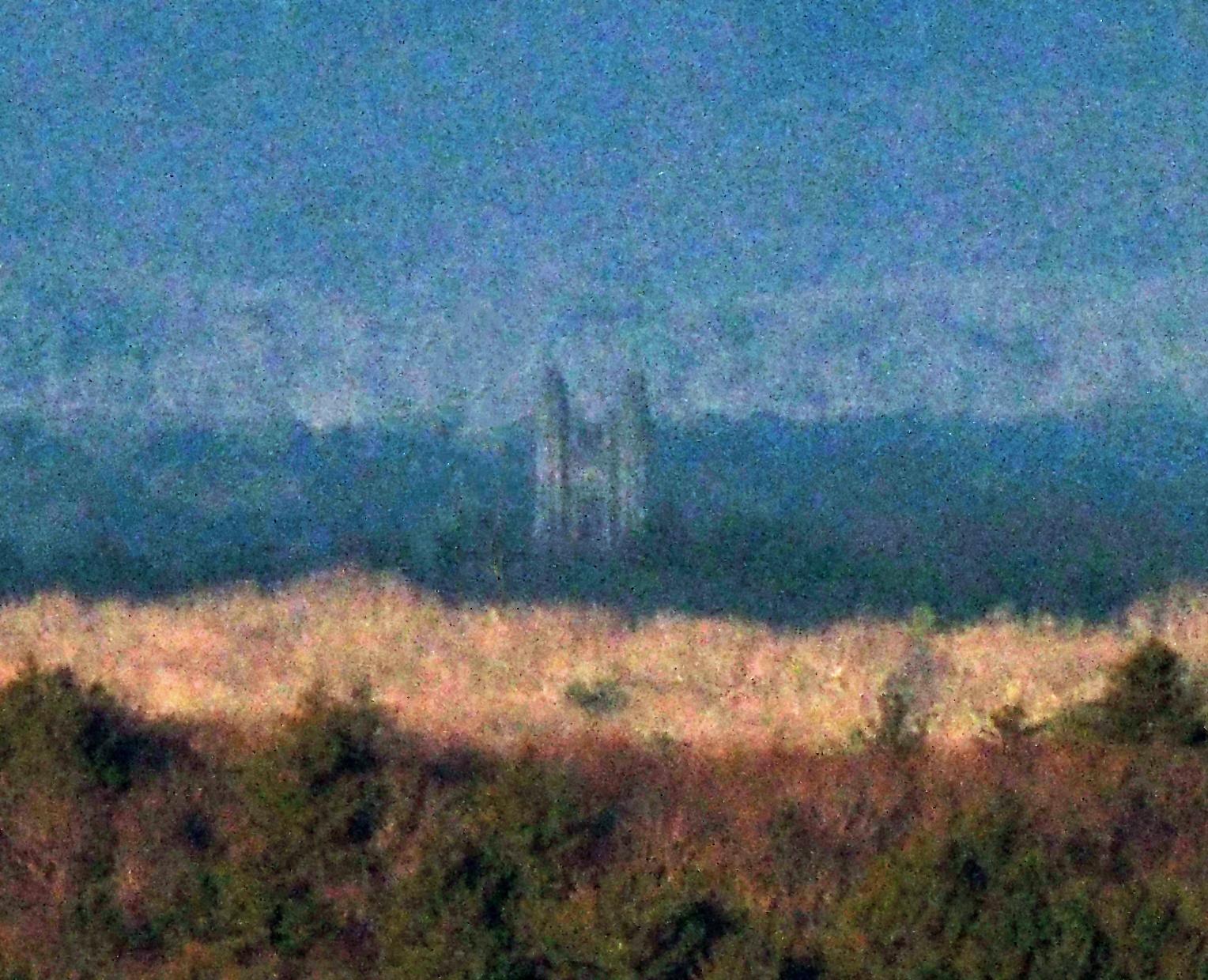 Unfortunately, this beautiful stone tower lies in an almost direct line with a not so beautiful communications tower, Needham Recycling and Transfer Station, 1421 Central Ave, Needham MA about 10.3 miles away. I took a stab at removing the comm tower using photoshop, so I have included that here as well, but full disclaimer that the first photo is the true depiction.