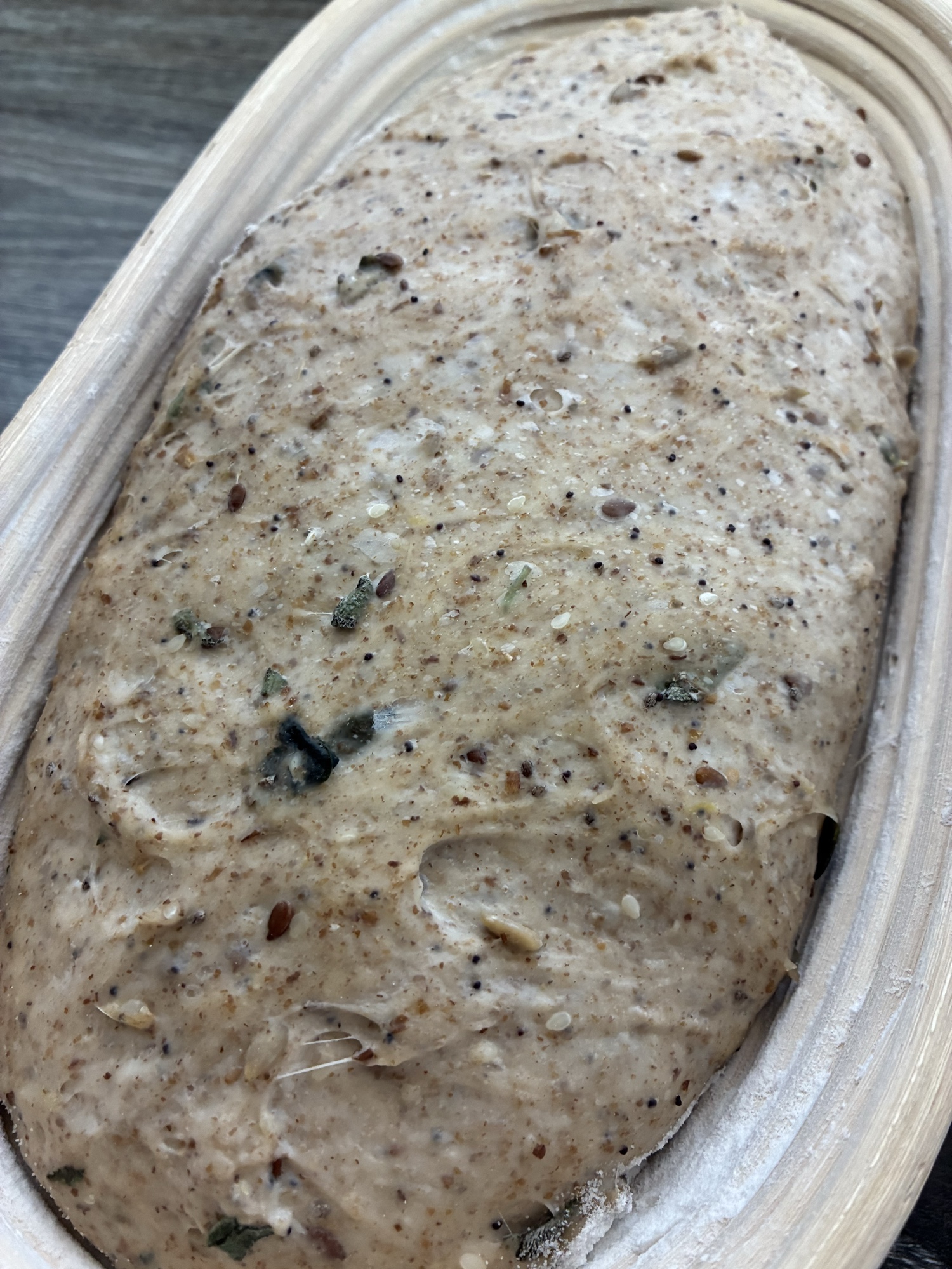 Out of the oven - multi-seeded sourdough using a Colorado levain, 10% scalded home milled Atle wheat and rye and 10% home milled black wheat, sage, lemon zest, seaweed, 80% very strong white Canadian flour and 65g mixed seeds. Present for friends. #sourdough #bread #breadsky #canadian #colorado
