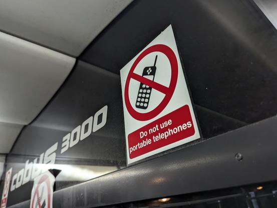 There are no jetways at Bristol airport. The bus that takes passengers to their plane has a sign that says "do not use portable telephones". This is nonsense, of course people are using their mobiles on the bus.