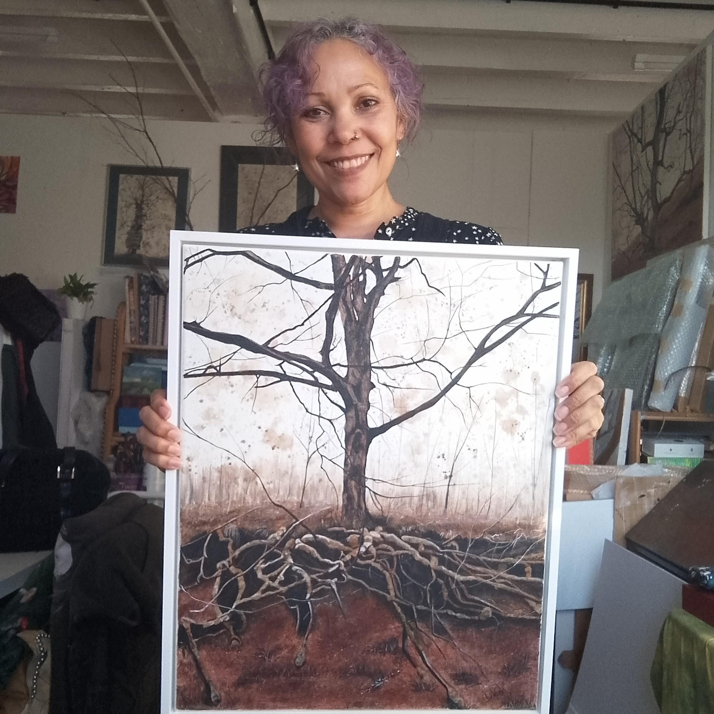 Diana is an artist whose work is inspired by a love for trees, nature and folklore. Based at Haarlem Mill in Wirksworth, she creates powerful yet ethereal portraits, creating connection between herself, trees and the land through use of natural pigments gathered and processed herself into paint.