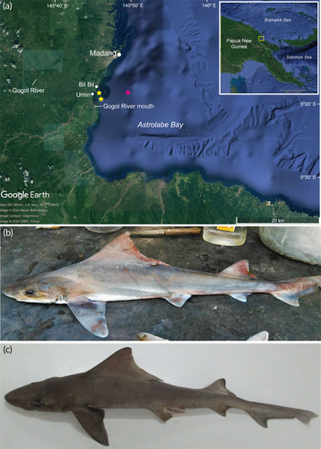 ![original legend: "(a) Map of Papua New Guinea showing the Astrolabe Bay area in the yellow box (inset). Yellow stars denote the locations where fishers caught Gogolia filewoodi specimens, and the pink star denotes holotype collection location. (b) Adult female [76.1 cm total length (LT)] and (c) adult male (73 cm LT) specimens of G. filewoodi caught near the mouth of the Gogol River." by J. Sagumai et al. (2025):, creative commons http://creativecommons.org/licenses/by/4.0](https://files.mastodon.social/cache/media_attachments/files/115/109/194/864/051/583/small/d97db3df99588085.png)
