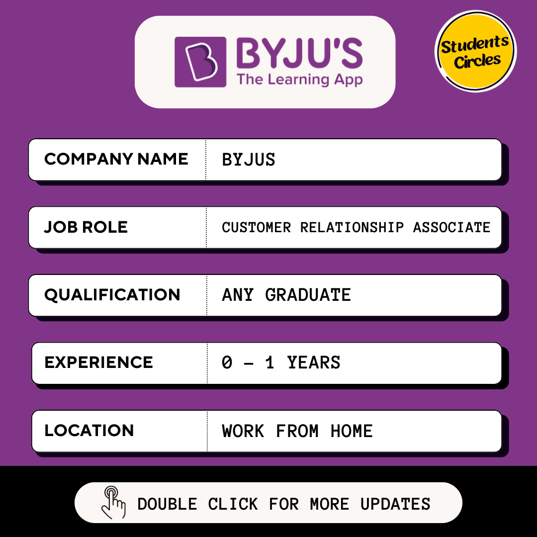 #jobs #hiring #freshers #offcampus #jobalert #jobsearch #entryleveljobs #studentscircles #byjus
