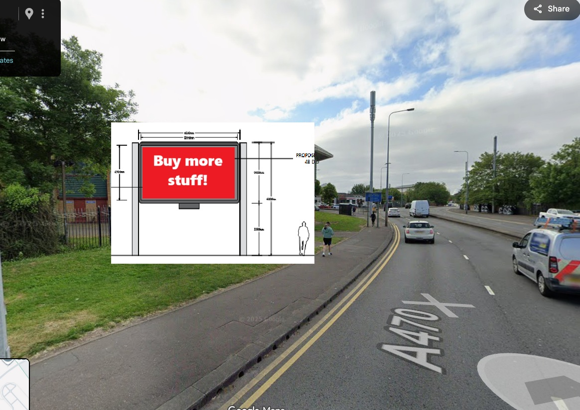 ๐จ PLANNING ALERT! ๐จ Proposed new ad board near the junction of Newport Road & Albany Road in #Roath #Plasnewydd #Adamsdown. It would be MASSIVE - see guide below, as tall as three people. Object here: www.cardiffidoxcloud.wales/publicaccess... #Cardiff #Caerdydd #AdvertisingShitsInYourHead