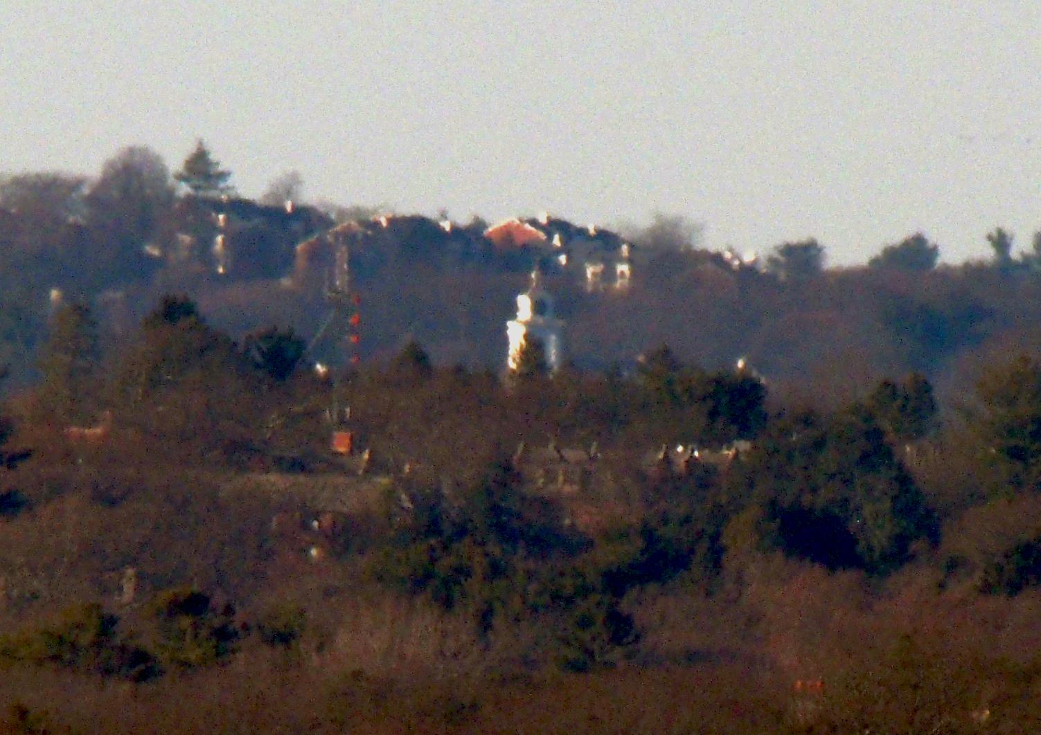 The rather magnificent Galen Stone Tower, Green Hall, Wellesley College, 106 Central St, Wellesley MA photographed from Buck Hill. While only about 13 miles away, this has proven to be a very difficult target to get a good photograph of. This one certainly is not the best, but it was taken on a fairly good day for visibility and shows a fair amount of detail of the tower. Given the limitations of my current gear, this is probably going to be close to the best that I can get. From the vantage point of Buck Hill, Galen Stone Tower sits almost directly under the summit of Mount Wachusett. Mount Wachusett is about 45.7 miles away which gives one a really good scale at just how small most man-made objects are.