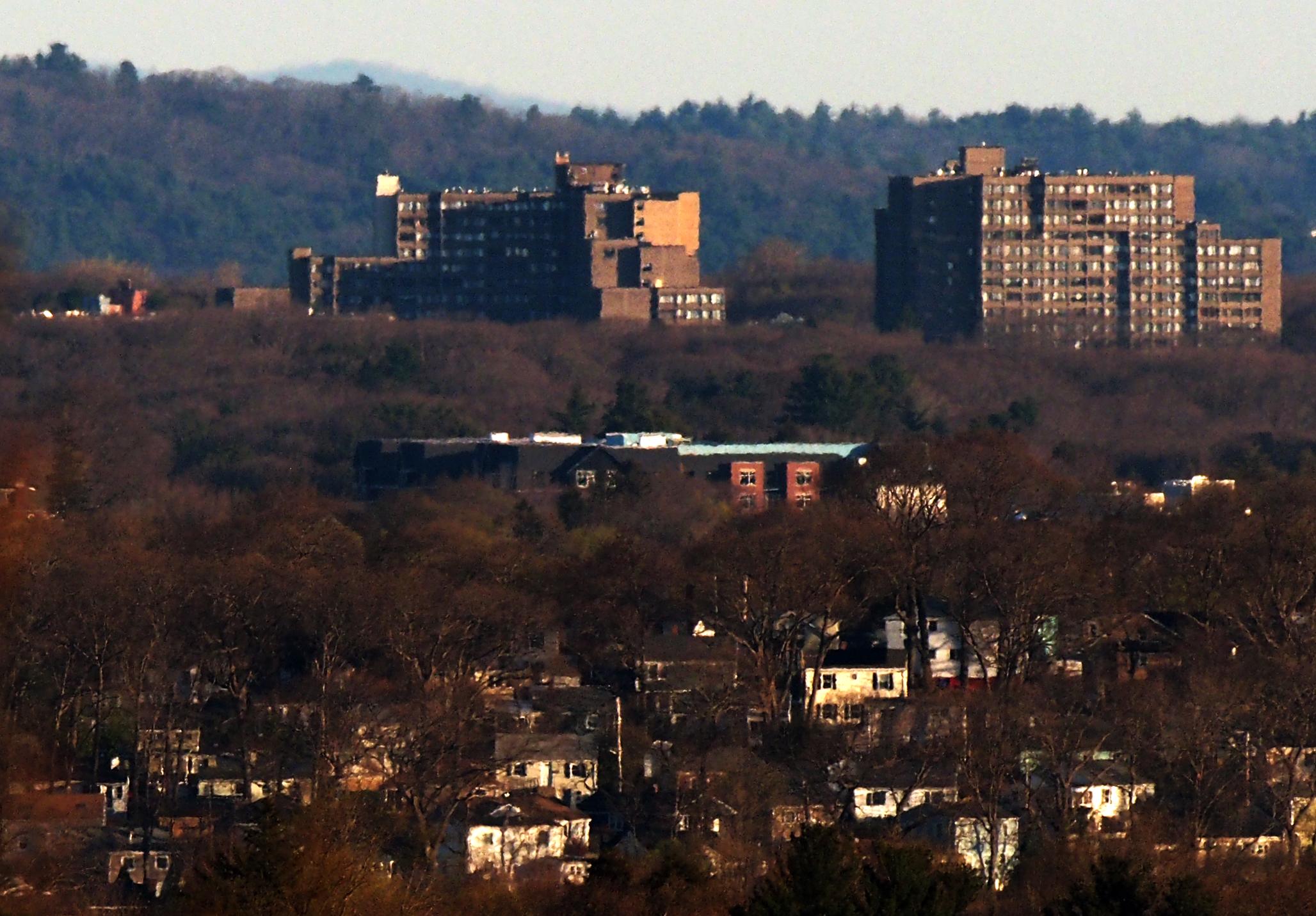 The Towers of Chestnut Hill (9.1 mi), 250 Hammond Pond Pkwy, Chestnut Hill MA photographed from Buck Hill.