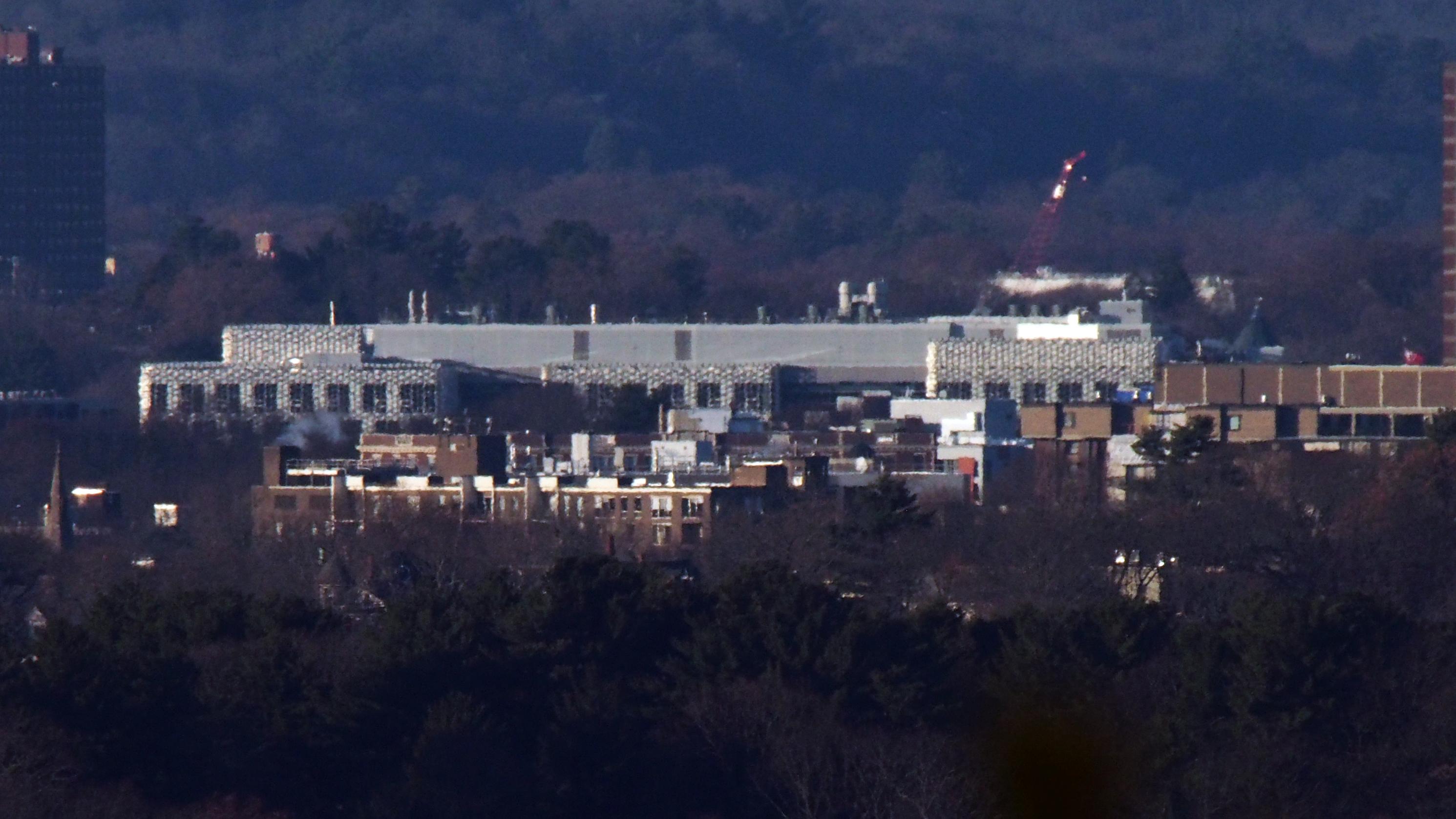 Harvard Science and Engineering Complex Library (10.57 mi), 146 Western Ave, Boston MA photographed from Buck Hill. Harvard Stadium sits directly behind this building, and I have to wonder if in the days prior to the library's construction whether the stadium would have been visible.