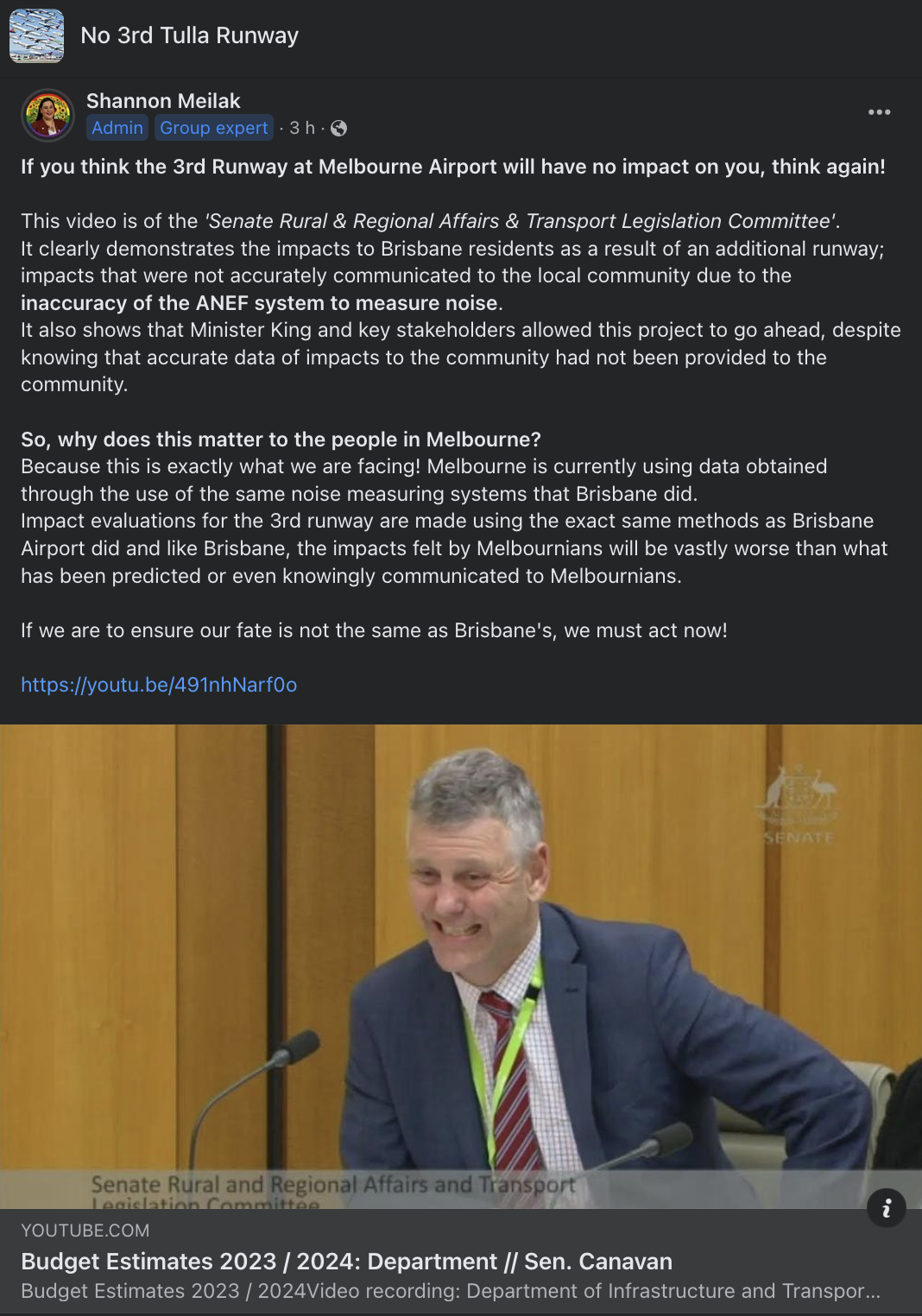 By the meetings end, I felt heard and optimistic. I have since followed up with an email to Harry containing further information and a link to our Facebook group. I hope that Senator Hume will be more proactive than our Labor MPs, in representing our community concerns and help us to ensure there is #no3rdtullarunway!