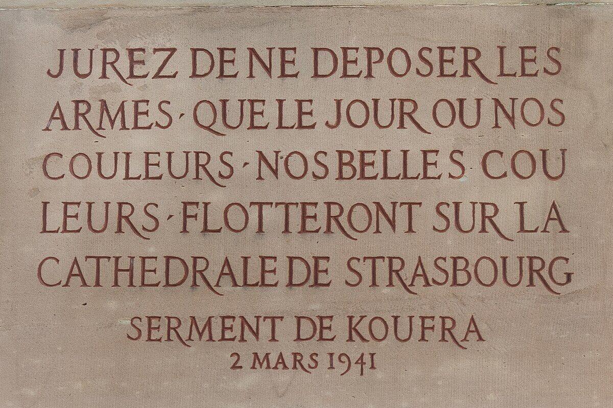 Leclerc et ses hommes réalisent ainsi le serment qu’ils ont prêté à Koufra en mars 1941 : « Jurez de ne déposer les armes que lorsque nos couleurs, nos belles couleurs, flotteront sur la cathédrale de Strasbourg ».