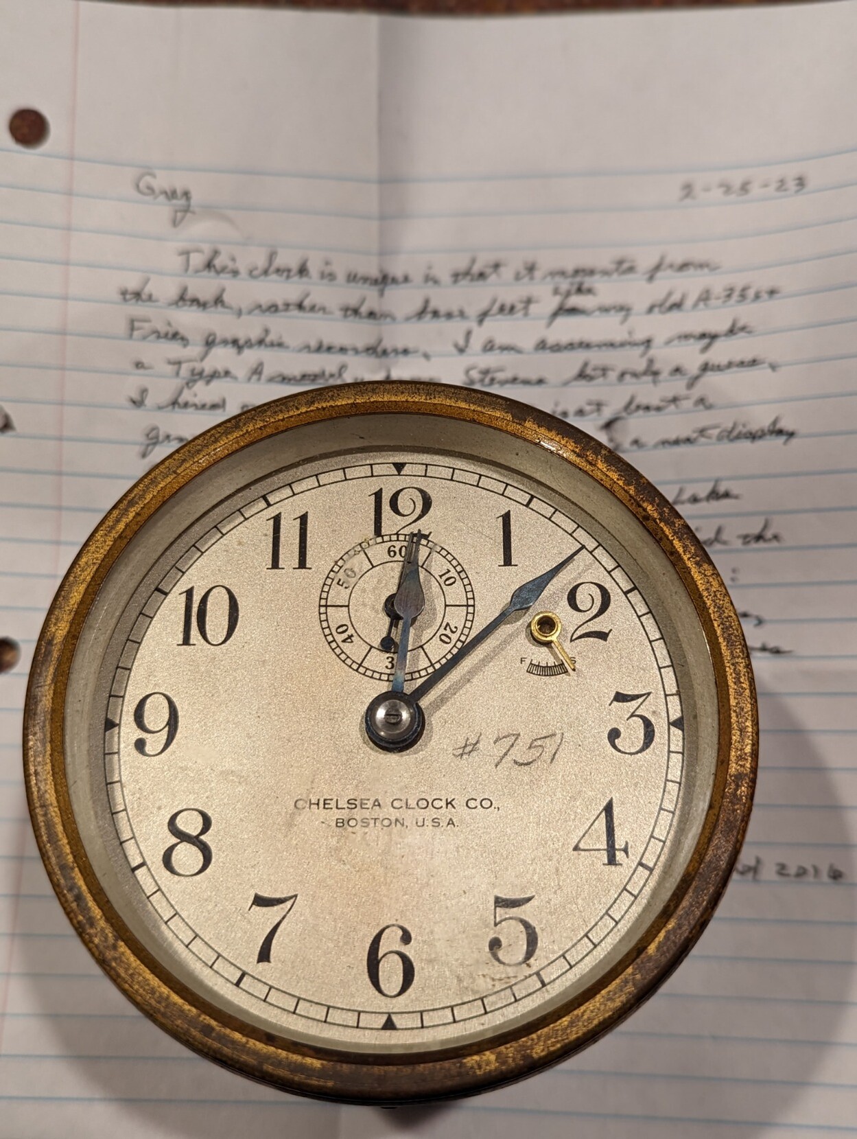 Brass Chelsea Clock Used For USGS Stream Gauging Gifted To Me (c. 1920 (?))