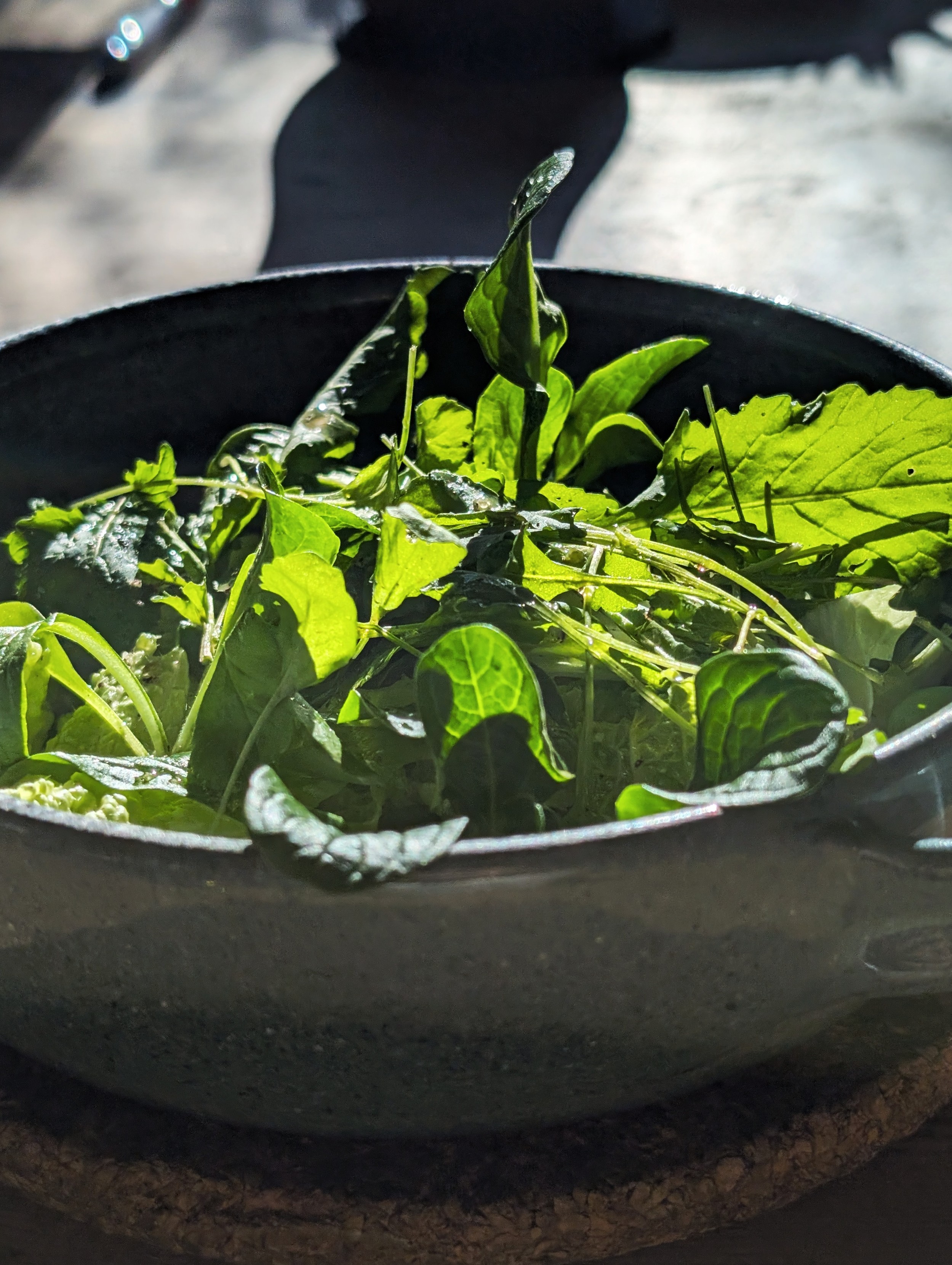 Feldsalat, Chinakohl, Kresse & Rucola – frisch geerntet mit ein paar Spritzer Maletti Balsamessig und dem selbstgemachten Basilikumöl.