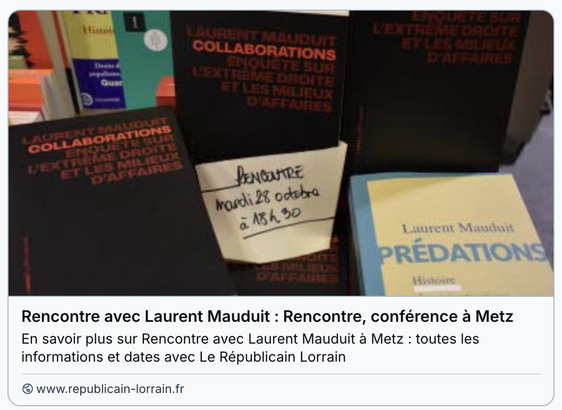 #Metz. « Entre l’extrême droite et les milieux d’affaires, le système est devenu poreux »: merci à Sandrine Issartel de s'être fait l'écho dans le Républicain lorrain des alertes portées par mon livre #Collaborations