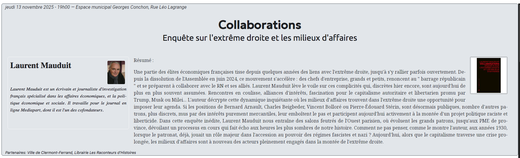 Prochains débats autour de #Collaborations-enquête sur l'extrême droite et les milieux d'affaires