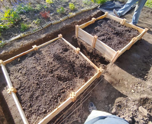 I helped my neighbor build raised plots today.
