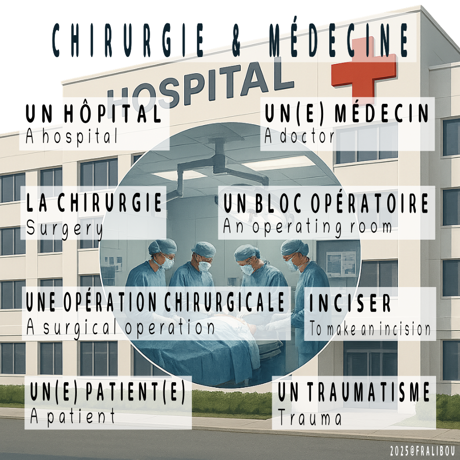 #Chirurgie #Médecine #Santé #VocabulaireFrançais #ApprendreLeFrançais #LangueFrançaise #FrançaisAuthentique #FrenchWithFralibou #CompréhensionOrale #LearnFrench #MedicalVocabulary