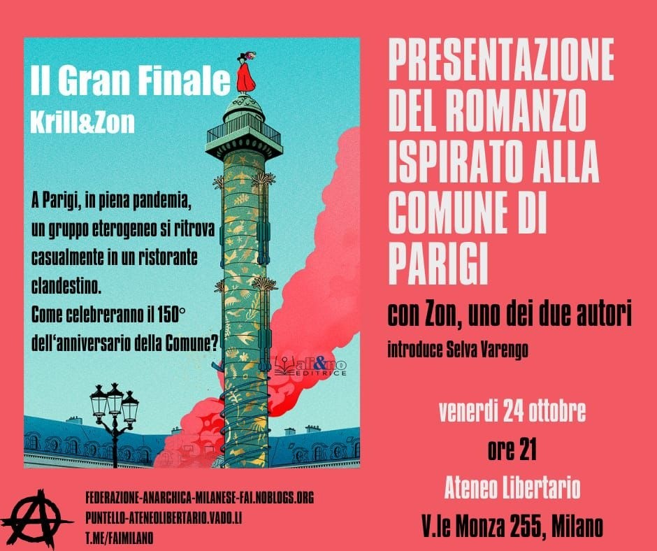 Venerdì 24 ottobre, dalle 21:00, presso Ateneo libertario, Milano, viale Monza 255