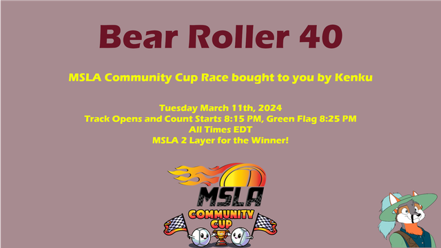 Once the hour is done, we will roll into the Bear Roll 40. We will be going to Bear Ridge for 40 Laps, for the Tenth race of my Winter Season of the Marbles on Stream Laps Association Community Cup.