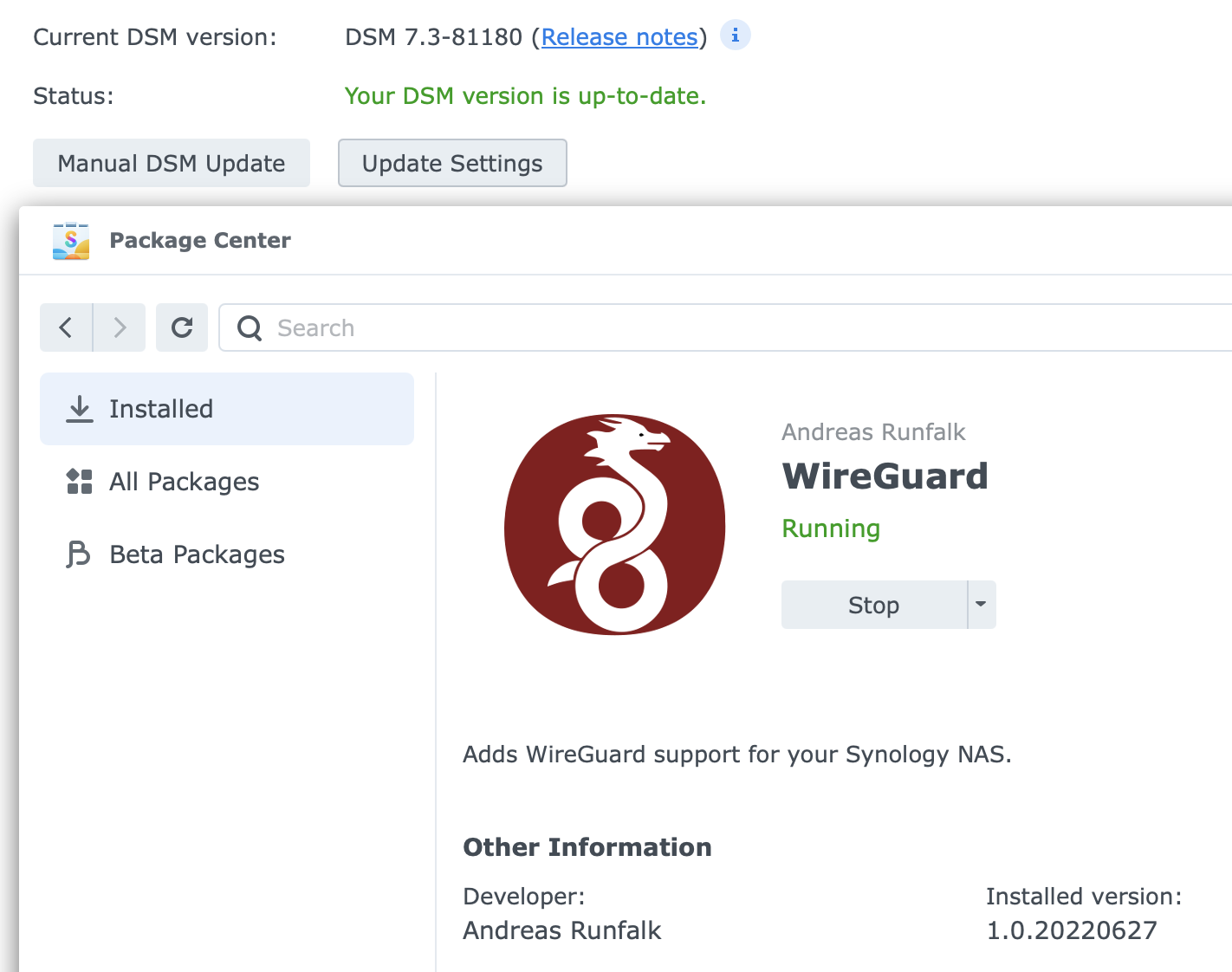 The custom #Synology SPK for #wireguard works with #DSM73 without a specific build using new toolchains (they are still not ready anyway). #selfhosting #selfhosted #homelabard-spk-for-your-synology-nas/