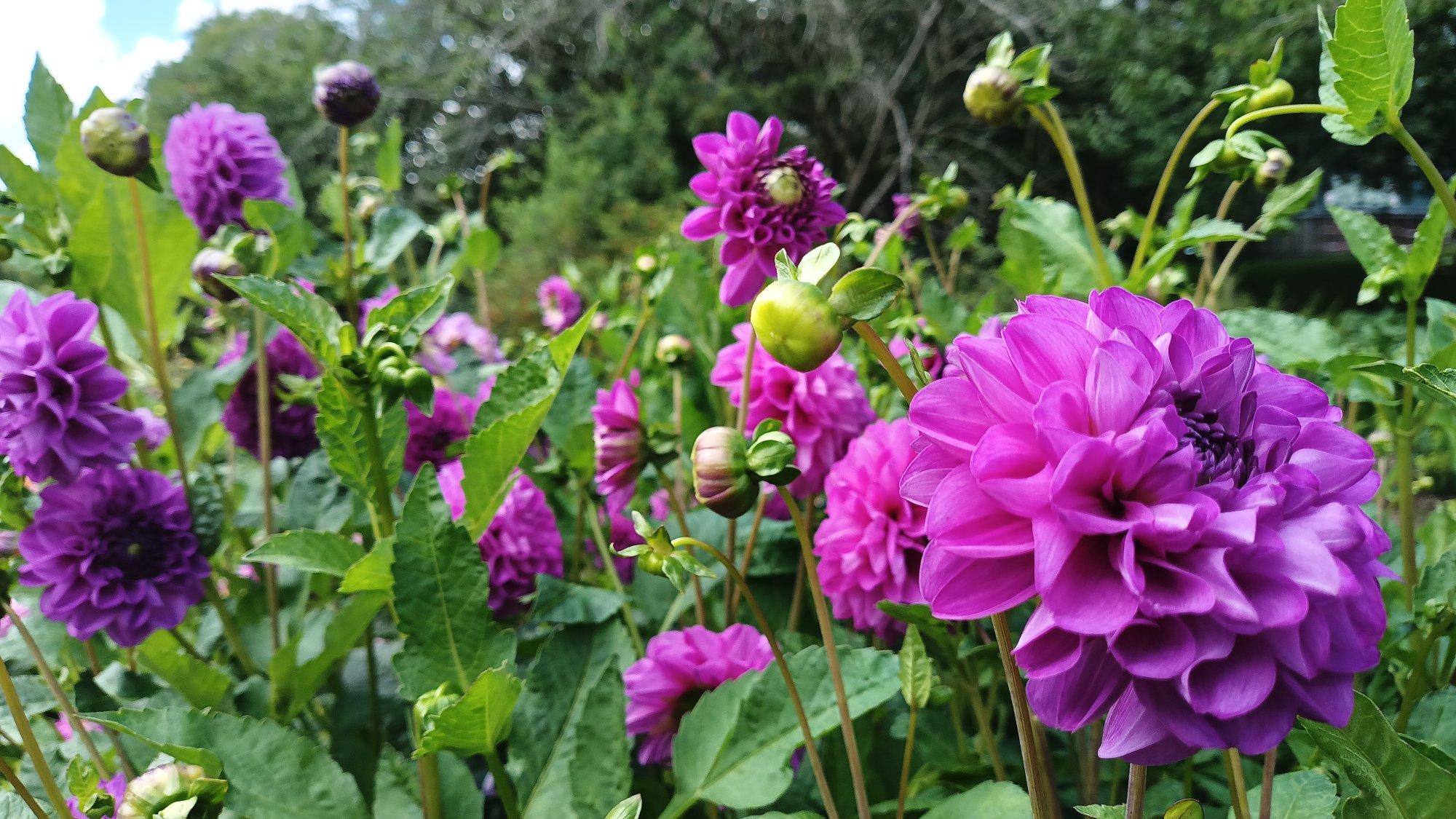 Wir haben hier in der Stadt einen Dahliengarten, der jedes Jahr am Ende des Sommers eine große Auswahl an Dahlien zeigt.