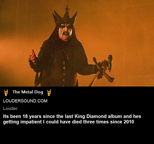 It's been 18 years since the last King Diamond album and he's getting impatient "I could have died three times since 2010"