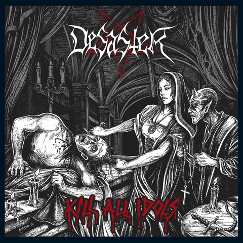 Every 4 years or so, Germanyâs rabid blackened thrash slime eaters Desaster drop a new album on the revolted masses. Their berserk take on speed borrows greatly from the original Destruction EP, Sentence of Death, and they festoon the unhinged recklessness with blackened blisters and classic heavy metal influences for a sound that slaps, slices, and shits on your floor. Itâs not subtle, nor is it âthinking manâs music.â Instead, it murders the thinking part of your brain and activates the most base and perverse instincts. On odious gems like Divine Blasphemies and The Arts of Destruction, they pour all the worldâs bile and crust-poo into a pressure cooker, cover the steam valve, and turn it to 12. The resulting explosion is predictable and unsurvivable. At their best, Desaster bring a level of sheer mayhem few bands can match. Will 10th album, Kill All Idols be another nuclear crematorium eruption, or has advanced age finally slowed the bloodlust of these inveterate axe murderers?