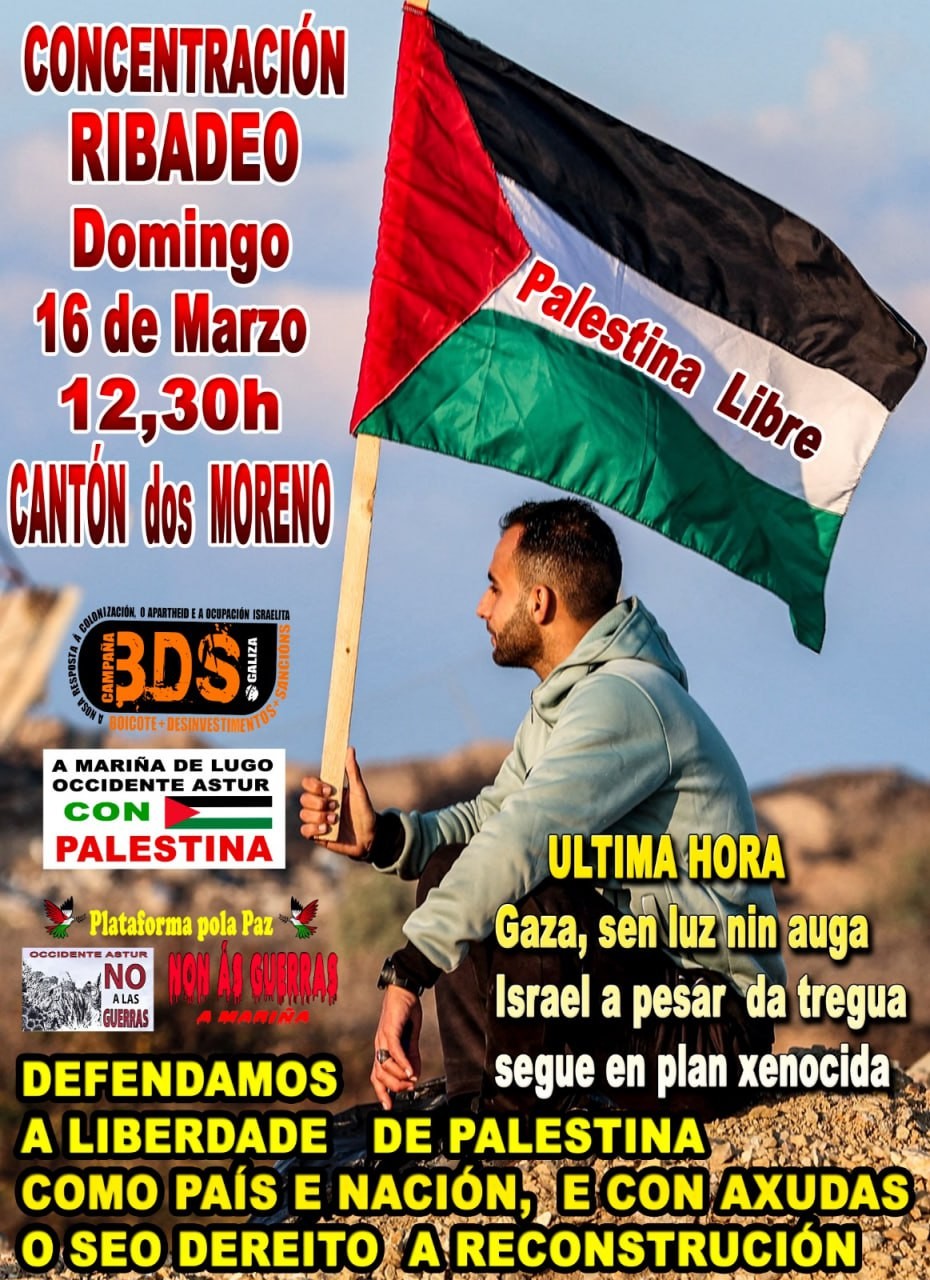 #BDSGaliza #Boicot #Desinvestimentos #Sancións #apartheid #ocupación #AMariñaDeLugo #OccidenteAstur #Palestina #PlataformaPolaPaz #NoALasGuerras #NonÁsGuerras #amarina
