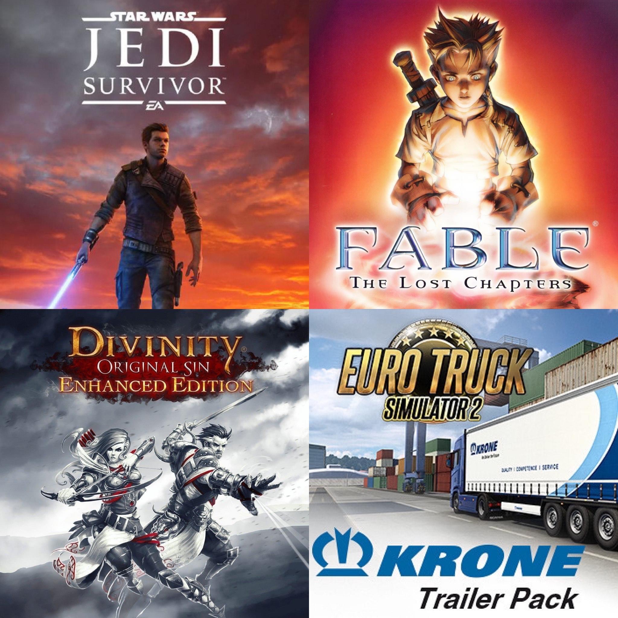 Got my VideoGameGeek Secret Santa, and ended up with Jedi Survivor, Divinity Original Sin and Fable The Lost Chapters plus a DLC for ETS2