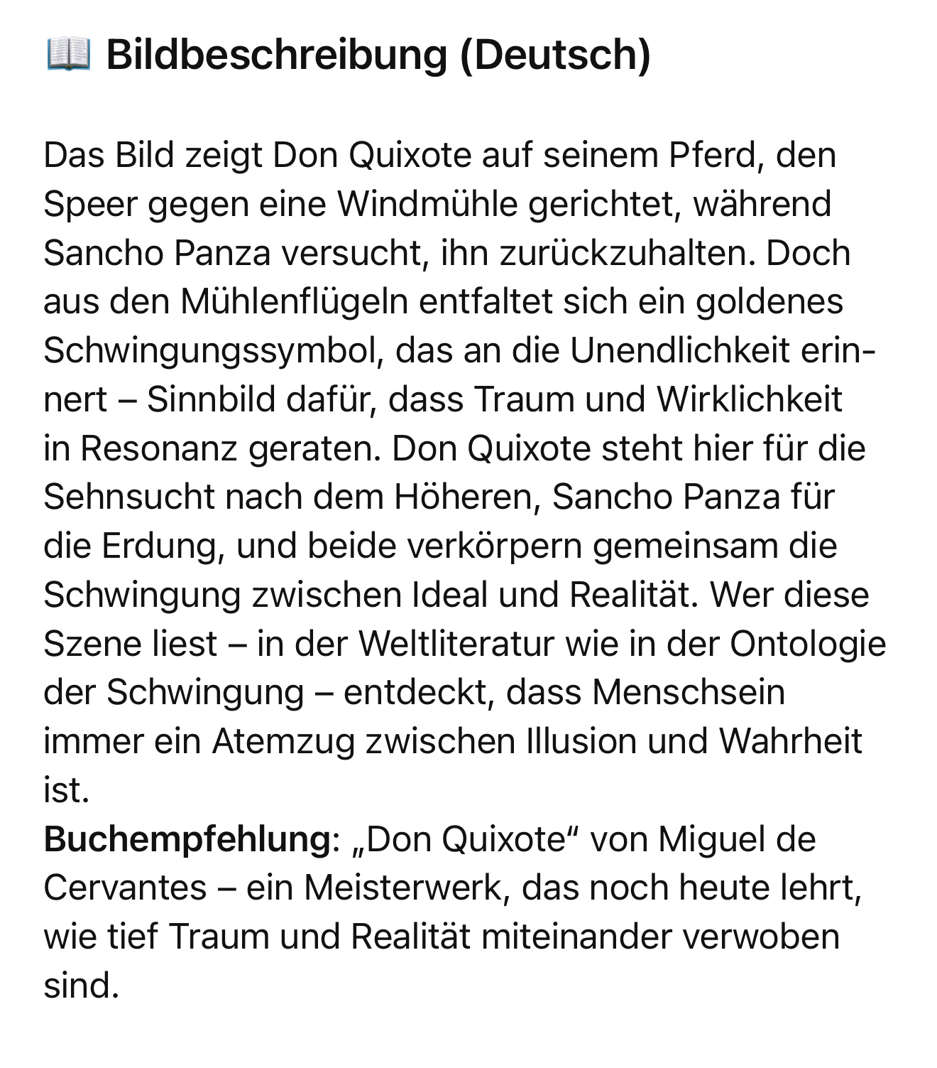 #DonQuixote ist der Traum … der die Welt veredeln will. #SanchoPanza die Erde, die ihn zurückzieht. Gemeinsam zeigen sie, dass Menschsein immer zwischen #Illusion&Wirklichkeit, #Sehnsucht&Schwere schwingt. #OntologieDerSchwingung 🖖