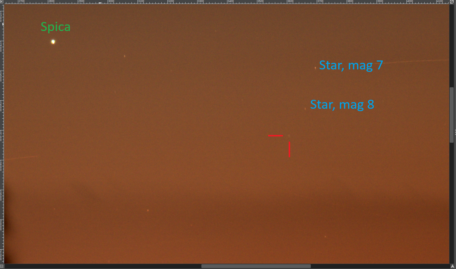 I also searched this part of the sky with 25x100 binoculars...and did not detect it visually.