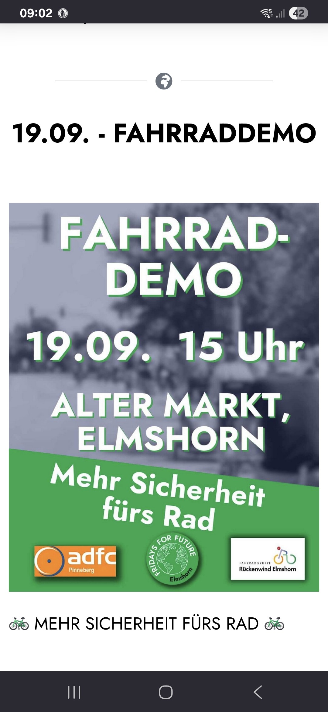 Heute 🚴♂️#Fahrraddemo in #Elmshorn im Rahmen der Mobilitätswoche. Motto mehr Sicherheit fürs Rad.