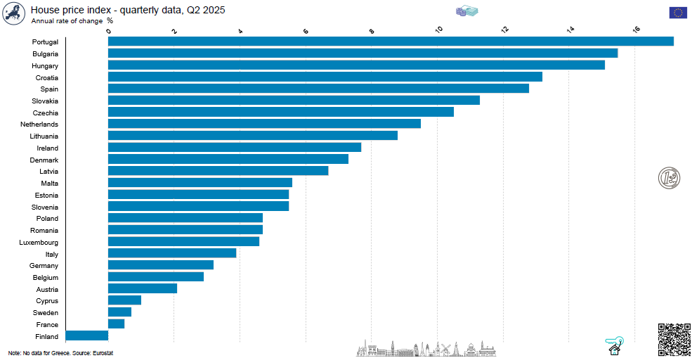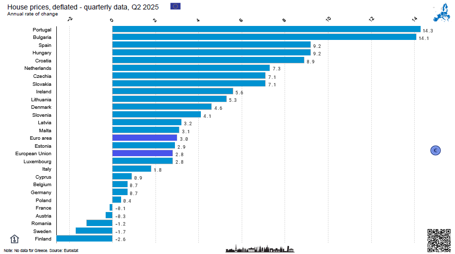 Real (deflated) house prices in EU countries, Q2 2025