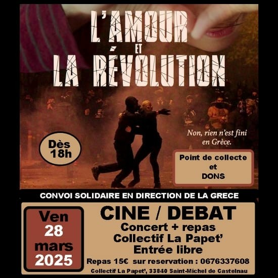 19h00 : repas solidaire à prix libre en soutien aux collectifs de lutte grecs